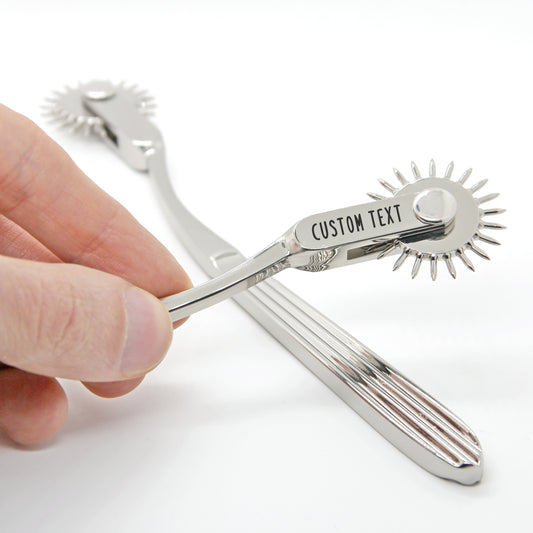 BDSM toy Wartenberg wheel. Custom sensory play spiky pinwheel. Sex fetish gear personalized. Engraved BDSM fetish bottom gift submissive